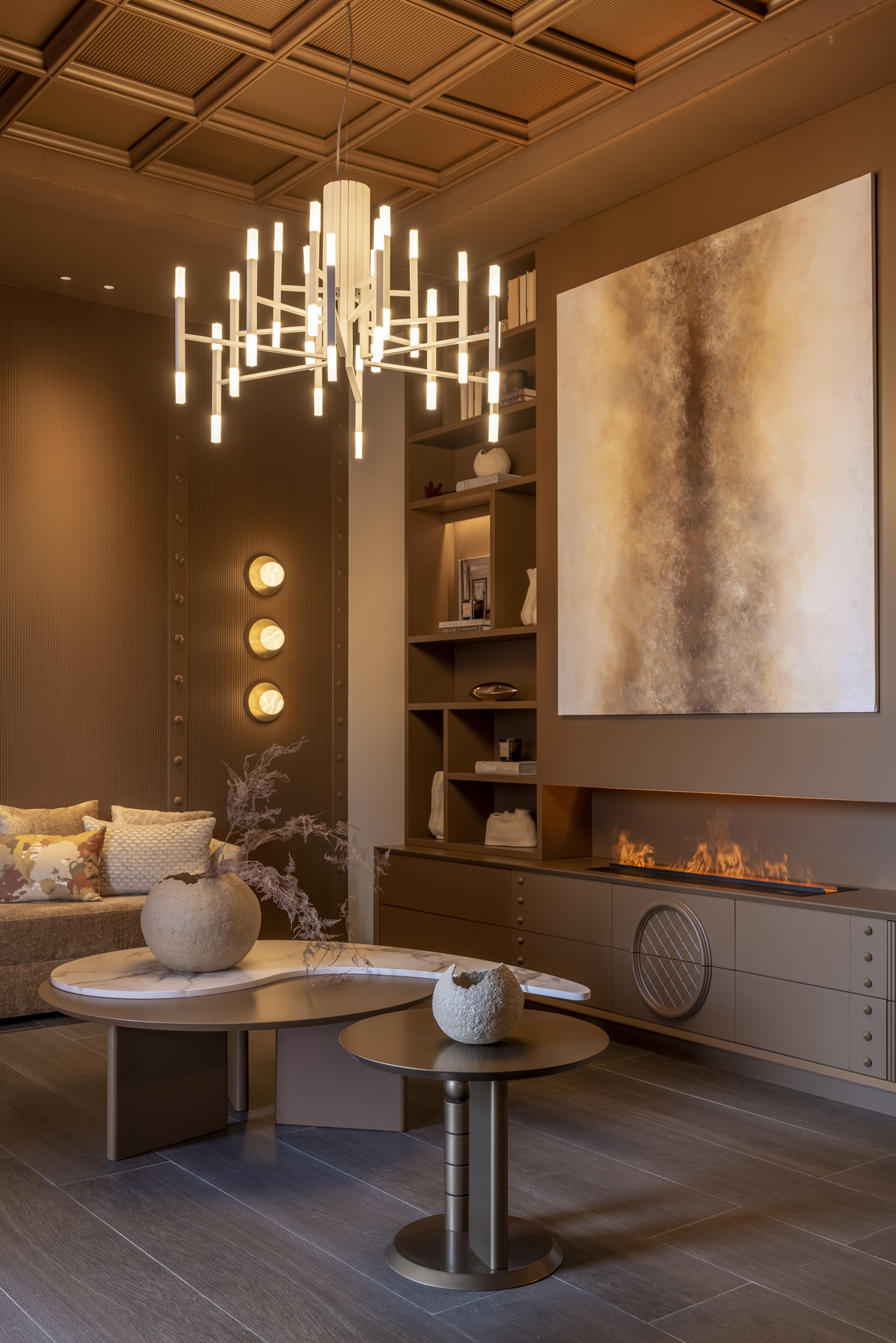 Casa Yang is defined not only by the presence of light but by its ability to generate luminosity in unexpected ways. Here, light is not solely dependent on bright colors. Deep, rich tones like browns and terracottas blend with warm accents that invite a sense of well-being. Far from absorbing light, they transform it, creating a cozy yet sophisticated atmosphere. A sensory experience that invites you to engage in its dance between light and shadow, discovering in every corner the possibility of renewal.